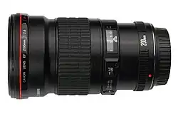 The EF 200mm USM lens is an L-series prime telephoto lens made by Canon Inc. for the EOS line of cameras. Four 200 mm primes were made: f/1.8, two f/2.8, and the most recent f/2.0.