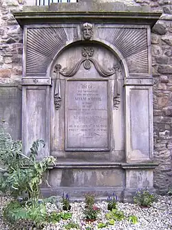 Adam Smith LLD (1723–1790), economist and author of The Wealth of Nations, founded the study of political economics. His house was very close by, at the head of Panmure Close, and it survived until 1889. He lived here from 1778 until his death in 1790, having moved from his native town of Kirkcaldy. The grave is a place of pilgrimage for economists of the world. Although an imposing railed monument, it may have been altered in the 1930s, as it was then described as "too small to notice". It is understood that Dr Joseph Black, the chemist and physicist, and James Hutton, the founder of geology, were both at his funeral, being his executors, as would have been David Douglas (see below).