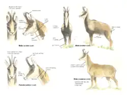 The Cantabrian chamois is a slim bovid the size of a domestic goat. Both sexes have peculiar hooked horns (more hooked and thicker in males than in females, Figures 1,2,3).