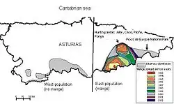 | Distribution of Cantabrian chamois in 2008.[2][3] | |