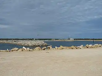 The locality includes a settlement located on the north side of the headland overlooking Lacepede Bay which is also known as Cape Jaffa. The settlement includes a jetty and a marina. The locality includes part of the Bernouilli Conservation Reserve.[1][4][10][11][12][13] The Marina (known as Cape Jaffa Anchorage) received development approval in January 2006.[14] The plans allow for several stages of development. At least the first stage exists,[15] and the marina is considered to still be "under construction" in 2018.[16]