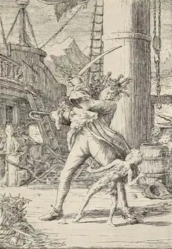 Frank Thomas was the directing animator of Hook.[11][12] According to Disney's Platinum release bonus features, Hook was modeled after Charles II of England.[13][14][15][16] One director insisted that Hook should be a darker villain with no comedic traits; but this was refused for fear of frightening a juvenile audience, and Hook became a comical villain, equally matched with Peter Pan.[10]