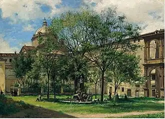 Upon his return home in 1856, he became a professor at the Academy; specializing in history painting. After that point, he concentrated almost exclusively on his teaching, rather than painting. His few works were meticulously done and historically accurate, but received very little critical attention. He was eventually appointed a Senior Professor.[2]
