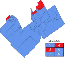 Winning party in each polling division of Carleton at the 2022 Ontario general election