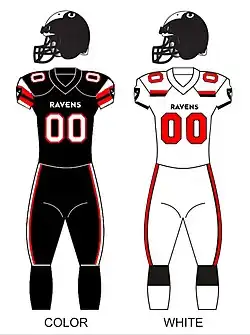 Historically, the Ravens football team first began play just after the Second World War in 1945 and was in continuous operation until the program was dropped in 1998.[2] While the team had some success in the mid-1980s, poor performances and a plan by the Carleton Athletic department to invest more funds in other sports led to the sport being cut after the 1998 season.[3][4] In their history, the Ravens won one Dunsmore Cup conference championship in 1985, but lost in the following Western Bowl to the Calgary Dinos 56 to 14.[5]