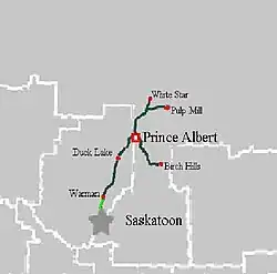 - ^ "Northwest Sask. communities rally around rail proposal". CBC News. 2009-07-08. Retrieved 2009-11-09.