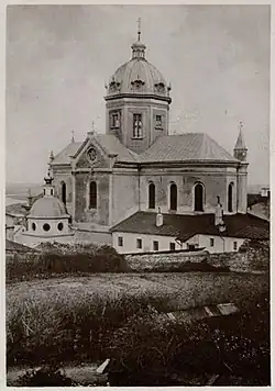 The Carmelites begun modification of architectural details of the Cathedral to give it more of a Latin-rite appearance and erase traces of the church's links to Ukrainian Greek Catholicism.[4] The belltower was a target due to its easily seen Cyrillic inscriptions.[5] Latin Catholics in the city argued that the church which was originally Latin Catholic, confiscated and given to Ukrainians by Austrian authorities, was rightfully returned to the Poles.[1] In 1996, against the orders of the conservator general of historical monuments in Poland, Prof. Andrzej Tomaszewski, the Carmelites destroyed the Habsburg-era dome of the church, claiming that it disrupted Przemysl's "Polish" skyline, being ‘orthodox’ - despite it being modelled on the dome of S Peter’s Rome [6] an act which sparked protests amongst Ukrainians in Przemyśl.[2] The Carmelite church continues to serve the faithful of the Latin Rite.