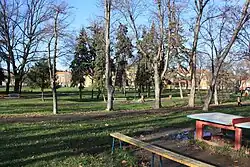 The creation of a People's Park in Elisabetin was decided on 31 January 1895, during a meeting of a local initiative committee of neighborhood residents at Novotny Restaurant.[2] The statutes of the Elisabetin Park Association (Erzsébetvárosi Parkegylet) were drafted at a subsequent committee meeting on 9 February of the same year. According to the statute, founding members contributed an annual fee of 20 forints (ordinary members 2 forints) to support the project. Material donations were also plentiful: the gardener Franz Niemetz donated 100 trees, while merchant Miksa Weiss provided the wood for benches, which were made free of charge by carpenters Mihály Albert and József Tichy.[2]