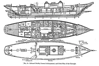 Carnegie was 155.5 feet (47.4 m) long with a beam of 33 feet (10 m). She was rigged as a brigantine, with square sails on the foremast, giving a total sail area of 12,900 square feet (1,200 m2).[1] The most distinctive feature was the observation deck, with its two observing domes made of glass in bronze frames. This allowed observations to be made under all weather conditions.[3]