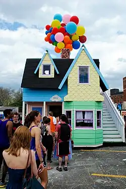 Buggy, officially called Sweepstakes, is a race around Schenley Park. It can be thought of as a relay race with five runners, using the buggy vehicle as the baton. Entrants submit a small, usually torpedo-shaped, vehicle that is pushed uphill and then allowed to free-roll downhill. The driver (who—like all participants—must be a Carnegie Mellon student, and is almost always short, light, and female) lies down inside the vehicle with the steering and brake controls. The vehicles are completely unpowered, including the prohibition of energy storing devices such as flywheels. Brakes are required but generally rarely used. Often, brakes are applied only as a last resort to prevent a crash, or to slow the buggy at the finish for the pusher to catch up because the rules specify that the pusher must be in contact with buggy at the finish line or be disqualified. Drivers who have been forced to apply the brakes due to another driver cutting them off may appeal for a re-roll in another heat without penalty. The second-to-last corner of the race, a sharp 110-degree right turn, is affectionately called "The Chute" and is lined with hay bales to prevent potential driver and spectator injury. Speeds can be quite high in the chute, often in the vicinity of 35 mph. Student Dormitory Council (SDC)[8] holds the current men's record of 2:02.16 and the current women's record of 2:23.27, both set in 2017.[9]