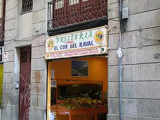 Carrer de Joaquín Costa is a street in the city centre of Barcelona (Catalonia, Spain). It belongs to the neighbourhood of Raval, beginning at Plaça de Goya by Ronda de Sant Antoni and finally converging into Carrer del Carme. The area surrounding it is a well-known nightlife district, and many bars . From working class beginnings, the street has been in a continuous state of gentrification during the 2000s (decade) and has become more mainstream attention in recent years, as well as a residential area home to many Filipino and Pakistani immigrants. Teatre Goya and the Aragonese Cultural Centre are on the northern end of Joaquín Costa.