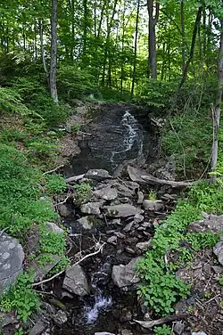 The 4,670-square-foot (434 m2)[3] house is located on a steep 4-acre (1.6 ha) lot that slopes to the southeast in a hilly area of New Castle just north of the Ossining town line, above Saw Mill River Road (New York State Route 100) and the Taconic State Parkway a short distance to the east. The area is residential, with houses both older and newer on similarly sized lots in the neighborhood. All are heavily wooded, with many mature trees providing shade and shielding houses from public view. A small stream, an upper tributary of the Pocantico River, flows through the property.[2]