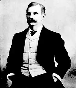 Goyder was born in 1826 in Tewkesbury in Gloucestershire. In 1856 he married Emily Stredwick in London and shortly after left England and came to Victoria. He was for many years landlord of the Victoria Hotel in Bourke Street. He was also closely connected to the sporting community and owned several racehorses one of whom was the champion called "Sussex".[6] The couple had five sons and one daughter and for 25 years lived in Melbourne. With his hotel and sporting interests Frederick became very prosperous. In 1881 he and his sons decided to sell all their Melbourne interests and buy a sheep property in the Warrego region of NSW.[7] However this was not a success and when he had the chance to take over the hotel he seized the opportunity. With the permission of Lord Carrington who visited the premises in 1886 in his capacity as Governor of NSW[8] Carrington gave permission for Goyder to change its name to The Carrington Hotel.[3]