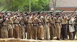 The Carter House played a very important role in the Second Battle of Franklin. Prior to the fight, the house was taken over as the headquarters of the Twenty-Third Army Corps commanded by Brigadier General Jacob D. Cox.[3] Federal breastworks were erected just south of the home extending to both the east and west of Columbia Pike. The Carter family took refuge in the basement of their home during the battle.