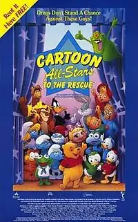 Cartoon All-Stars to the Rescue is a 1990 American animated children comedy-drama social guidance film starring many characters from several animated television series at the time of its release.[1] The plot follows Michael, a teenager who is using marijuana, leaving his family worried. When his younger sister Corey's piggy bank goes missing one morning, cartoon characters come to life from various items in her room and find it in Michael's room along with his stash of drugs, so they give him an intervention in the form of a fantasy journey to teach him the adverse consequences of drug use.