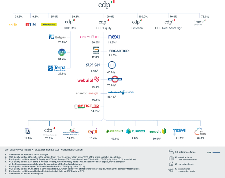 - ^ Relazione Semestrale CDP 2024, Relazione Semestrale CDP 2024 (1 August 2024). "Relazione Semestrale CDP 2024" (PDF).
