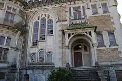 The four-storey structure and its spaces are a mixture of popular styles and materials, using a diverse palette of styles.[1] Isolated, the spaces have specific aesthetics, connected using bridging elements (materials and decorative themes).[1] From the analysis of the constructive details, one can descern the importance that image had in its construction.[1] The windows are wood or iron, or still, executed with both materials, making it difficult to determine whether their treatment was part of the building's construction or if they were part of the architectural design of the architect Korrodi.[1] In contrast, the roof tiles are signed by the designer, while their colour (green) integrates into the landscape, something the rest of the building refuse to do.[1]