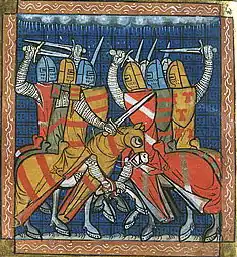 ![]() Miniature depicting medieval cavalry in combat. | |||||||