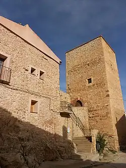 The castle had three towers, one of which is currently in ruins, and another which hosts exhibitions. The tower located on the upper level has a stone base on which stands a mud-based, badly damaged body. The second tower built in masonry and mud, is better preserved and is used for housing. This tower has a wall that unites it with the third tower and is located in the lower level of the walled enclosure. The keep is built in masonry and ashlar, and contains saetera [2] In the face that looks towards the intramural opens a gateway with arc providing access to "The Homage Tower", formed by a slightly pointed arch.