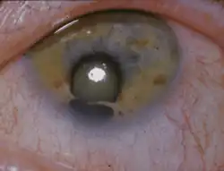 Cat eye syndrome (CES) or Schmid–Fraccaro syndrome is a rare condition caused by an abnormal extra chromosome, i.e. a small supernumerary marker chromosome.[2] This chromosome consists of the entire short arm and a small section of the long arm of chromosome 22. In consequence, individuals with the cat-eye syndrome have three (trisomic) or four (tetrasomic) copies of the genetic material contained in the abnormal chromosome instead of the normal two copies.[3] The prognosis for patients with CES varies depending on the severity of the condition and their associated signs and symptoms, especially when heart or kidney abnormalities are seen.[4]