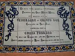 Catarina de San Juan died 5 January 1688, at the age of 82 years. In Puebla de los Ángeles she was venerated as a popular saint until 1691, when the Holy Inquisition prohibited open devotion to her. Today, the former Jesuit church, the Templo de la Compañía, in Puebla, is known as La Tumba de la China Poblana because in its sacristy purportedly lie the remains of Catarina de San Juan.[5]