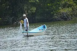 The most widespread activity is ranching, mostly raising cattle, followed by pigs and domestic fowl.[3][5] Next is fishing. Lake Catemaco is one of the most productive in Mexico, but large net fishing is prohibited in order avoid overfishing. However, over 2,000 fishermen earn a subsistence living capturing about 2,000 tons each year. Main catches include tilapia (an introduced species), a sardine called topote and a fresh water snail called tegogolo.[5] The most important crops are corn, followed by coffee and green chili peppers,[3] but beans, rice, watermelons, oranges, mangos and coconuts are also grown.[5][6]