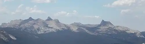 The range includes Cathedral Peak, Unicorn Peak, Eichorn Pinnacle, Echo Peaks, Echo Ridge, Matthes Crest, Rafferty Peak, Vogelsang Peak, Fletcher Peak and Cockscomb.[3] The highest point in the range is Mount Florence, one of the most prominent peaks in the Yosemite high country. The highest peak in Tuolumne Meadows is Johnson Peak.