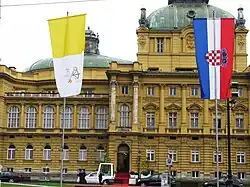 Popemobile in front of the Croatian National Theater during Pope Benedict XVI's official state visit in 2011