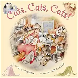 Cats, Cats, Cats! is a 2001 Children's picture book by Lesléa Newman and illustrated by Erika Oller. It is about Mrs Brown, a little old lady, and her 60 cats who snooze all day but then get up to all sorts of mischief at night.