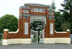 Caversham has no secondary schools, although it does contain a primary school and a special needs school. Carisbrook School, at the corner of South Road and Surrey Street, was formed from a 2012 merger of Calton Hill School, Caversham School, and College Street School on the Caversham School site,[43] which was established in 1921. The school's predecessor dates back to the early 1860s. The roll is 344 students as of July 2025.[44][45] The school's two-storey 1920s brick buildings were pulled down and replaced in 1961, because of their structural unsoundness. The school's main gate – the only surviving remnant of the earlier structure – is the suburb's war memorial.[46]