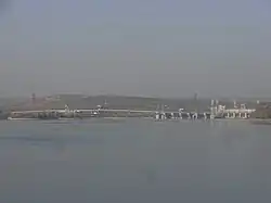 Two large hydroelectric dams were built on the Danube from the 1960s to the 1980s. Construction of the Iron Gate I Hydroelectric Power Station began in 1964 and was completed in 1972, while the Iron Gate II Hydroelectric Power Station was built from 1977 to 1984. The engineers completely disregarded the construction of fish ladder, so the dams blocked all species of large sturgeons to migrate upstream to their old spawning areas.[1][3] Other negative effects of the dams include higher fluctuations of the water level, backwater, erosion, climate changes and deposits of pebble and gravel on the previously rocky riverbed, which is more suitable for the spawning of the fishes in question.[4] With some other environmental issues around the Europe, this was part of the cause for the massive decrease in the number of all species of sturgeons, bringing them to the brink of extinction.[9]