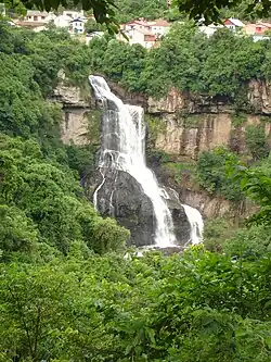 The main watercourses in the city are the Maestra Stream (north-northeast), the Biondo Stream (northeast), the Caravaggio Stream (southwest), and the Pinhal Stream (south). This network of valleys has extensive interfluvial areas ranging from 50 to 60 km in width. To the south, however, there are smaller, relatively branched valleys with reduced interfluvial spaces ranging from 4 to 5 km in width. The interfluvial spaces of these southern valleys are generally at the same elevation as the Caxias Plateau, ranging between 670 and 790 meters, while the bottoms of the gorges, where red sandstones outcrop, are typically below 200 meters in elevation.[57] The largest bodies of water in the city are artificial, dams built for the population's water supply, including the Maestra Dam (5,400,000 m3 (190,000,000 cu ft)), the Dal Bó Dam (1,770,000 m3 (63,000,000 cu ft)), and the Faxinal Dam (32,000,000 m3 (1.1×109 cu ft)).[58]