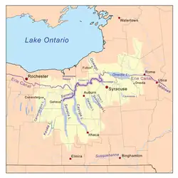 | End point | confluence of Seneca River and the Erie Canal (43°00′16″N 76°43′45″W / 43.004393°N 76.729072°W) | ||||||||||||||||||||||||||||||||||||||||||||||||||||||||||||||||||||||||||||||||||||||||||||||||||||||||||||||||||||||||||||||||||||||||||||||||||||||||||||||