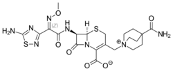 - ^ Watanabe, N. A.; Katsu, K (1992). "Cefclidin (E1040), a novel cephalosporin: Lack of selection of beta-lactamase overproducing mutants in an in vitro pharmacokinetic model system". The Journal of Antibiotics. 45 (8): 1335–45. doi:10.7164/antibiotics.45.1335. PMID 1399855.