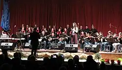 Due to studies, military service, education, etc. not all orchestra members live near Dion, some have other music teachers at their place of residence. At concerts of supraregional importance, the musicians meet for this performances; the number of musicians at concerts varies between 25 and 50. The orchestra has accompanied prominent Greek artists musically and performed the works of Greek composers. Some of them are:[1]