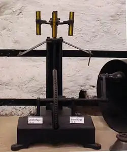 English military engineer Benjamin Robins (1707–1751) invented a whirling arm apparatus to determine drag. In 1864, Antonin Prandtl proposed the idea of a dairy centrifuge to separate cream from milk.[2] The idea was subsequently put into practice by his brother, Alexander Prandtl, who made improvements to his brother's design, and exhibited a working butterfat extraction machine in 1875.[3]