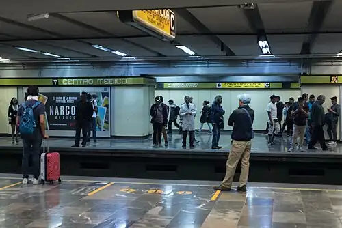 Centro Médico (Spanish: Estación Centro Médico) is an underground metro station on the Mexico City Metro.[2][3] It is located in the Cuauhtémoc borough of Mexico City.[2] It is a transfer station for both Lines 3 and 9.[2][3]