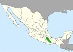 Cephalocereus tetetzo is distributed in the Mexican states of Puebla and Oaxaca.