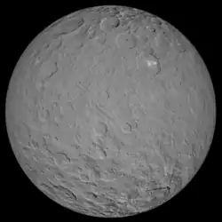 - ^ Hiesinger, H.; Marchi, S.; Schmedemann, N.; Schenk, P.; Pasckert, J. H.; Neesemann, A.; OBrien, D. P.; Kneissl, T.; Ermakov, A. I.; Fu, R. R.; Bland, M. T.; Nathues, A.; Platz, T.; Williams, D. A.; Jaumann, R.; Castillo-Rogez, J. C.; Ruesch, O.; Schmidt, B.; Park, R. S.; Preusker, F.; Buczkowski, D. L.; Russell, C. T.; Raymond, C. A. (1 September 2016). "Cratering on Ceres: Implications for its crust and evolution". Science. 353 (6303): aaf4759. Bibcode:2016Sci...353.4759H. doi:10.1126/science.aaf4759. PMID 27701089.