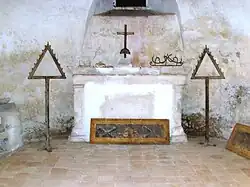 - Begun in 1610 and restored in 2003 after decades of neglect, its interior features a steeply sloped nave and several tombstones with Latin inscriptions. The central chapel retains traces of ancient frescoes.[52]