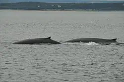 The sei whale is present worldwide, essentially in subtropical, subpolar and temperate areas.[22] However, offshore, it is often hard to distinguish from Bryde's whale, with which it has long been confused.[23] It is also sometimes hard to distinguish from the fin whale. In the summer, in the Atlantic Ocean, it is generally found in the vicinity of the Gulf of Maine. Little is known about its migration throughout the remainder of the year.[22] It prefers deep waters and is known to avoid semi-enclosed seas and gulfs.[24] However, stranded individuals have been observed in the Gulf of Mexico and off the coasts of the Greater Antilles Archipelago.[5]