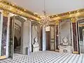 Asnières also included the first work by Charles de Wailly, designer of the Odéon in Paris—on his return from Italy, the marquis de Voyer entrusted him with updating the rococo dining room designed by Pineau. De Wailly added marble pilasters and a classical cornice, decorated with a mosaic frieze of putti. De Wailly also worked on the marquis' hôtel in Paris in the 1760s.