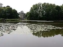 In the 19th century, the castle had two ponds. One was situated at the bottom of the park on the south side, while the other in the north of the Loiré road. The smaller pond, created during the park's development, features a wooded island. The larger pond, separated from the castle estate in the 20th century and transformed into a municipal area, has a history dating back to the Middle Ages when it served as a reservoir to power a water mill. The mill, initially constructed in the 15th century, was destroyed and rebuilt on multiple occasions, with the last reconstruction taking place in 1843.[18]