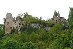 The Château de Morimont (German: Moersberg) is a ruined castle in the Alsace region of France, in the commune of Oberlarg in the Haut-Rhin département. It is 40 km southwest of Mulhouse and 45 km west of the Swiss city of Basel.