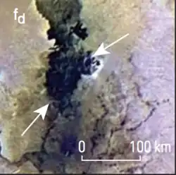 Lava rises along rim fractures.[2][5] This observation hints that the paterae on Io are formed by a combination of volcanism and tectonics.[5][6]