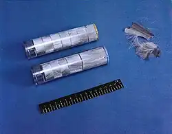The idea of using chaff developed independently in the United Kingdom, Germany, the United States and Japan. In 1937, British researcher Gerald Touch, while working with Robert Watson-Watt on radar, suggested that lengths of wire suspended from balloons or parachutes might overwhelm a radar system with false echoes[6] and R. V. Jones had suggested that pieces of metal foil falling through the air might do the same.[7] In early 1942, Telecommunications Research Establishment (TRE) researcher Joan Curran investigated the idea and came up with a scheme for dumping packets of aluminium strips from aircraft to generate a cloud of false echoes.[8] An early idea was to use sheets the size of a notebook page; these would be printed so they would also serve as propaganda leaflets.[9] It was found that the most effective version was strips of black paper backed with aluminium foil, exactly 27 cm × 2 cm (10.63 in × 0.79 in) and packed into bundles each weighing 1 pound (0.45 kg). The head of the TRE, A. P. Rowe, code-named the device "Window". In Germany, similar research had led to the development of Düppel. The German code name came from the estate where the first German tests with chaff took place, circa 1942.[9] Once the British had passed the idea to the US via the Tizard Mission, Fred Whipple developed a system for dispensing strips for the USAAF, but it is not known if this was ever used.