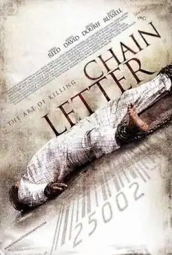 Chain Letter is a 2010 American slasher film directed by Deon Taylor. It was written by Diana Erwin, Michael J. Pagan, and Deon Taylor. The film is about six friends who are stalked by a murderer who uses chains to kill them if they do not pass on the chain letter to five other people.
