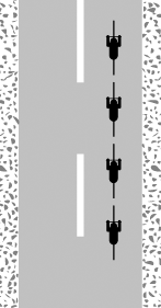 The technique is hard to perfect because it demands riders cycle close to the rider in front at speed, sometimes just centimetres from their tyre. It also demands trust in others in the group because, that close, no rider would be able to avoid hitting the one in front if the pace suddenly slowed. For that reason, the leading rider takes responsibility for taking the line through the smoothest path they can and at a constant speed. They should also indicate with hand gestures the upcoming bumps or obstacles on the road by pointing their finger in the corresponding direction the hazard is coming, in a manner that can be seen by the following rider, who is likely staring at their rear wheel. (Pointing their finger down on the left if they are about to closely pass by a pothole on this side, etc.) The following rider can then relay the information to the next and so on, creating a "chain of information" so the whole group is safe.[3]