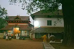 Chakkamkulangara Siva Temple is an ancient Hindu temple dedicated to Lord Shiva and Devi Parvathi is situated at Thrippunithura of Ernakulam District in Kerala state in India.[3] The Chakkamkulangara temple is dedicated to Lord Shiva however temple is equally famous for the Navagraha pratishta.[4] The Lord Shiva of the temple represents the Swayamvara moorthy though originally it was in the form of "Mrityunjaya" in his fierce ('ugra') form, facing west, featuring eight hands with various attributes.[5] Thrippunithura is one of the Brahmin settlement in the ancient Kerala and Capital of Cochin kingdom. The temple structure is made kerala-dravidian architecture style and is more than 1000 years old. According to folklore, sage Parasurama has installed the idol of Lord Shiva.[6] The sage Parasurama is the sixth incarnation of Lord Maha Vishnu. The temple is a part of the famous 108 Shiva temples of Kerala and references to this temple (Adampalli) is found in 108 Shivalaya sothram.[7]