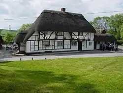 The village pub, The Red Lion, is believed to be the oldest in Hampshire, dating from the 16th century, though possibly earlier.[3] The Church of England Parish Church of St. Michael and All Angels has a thirteenth-century chancel;[4] the registers include burials in woollen cloth from 1678 to 1746. Clanfield and Chalton parishes were amalgamated 1932. Chalton was listed as part of the 'Hundred of Finchdean' in the Domesday Book.